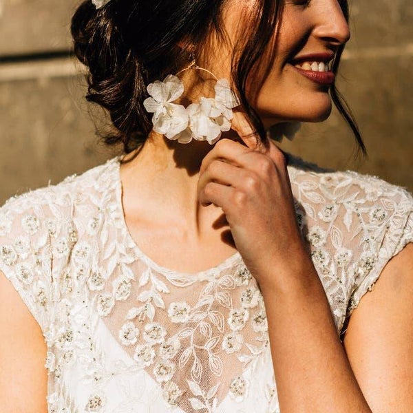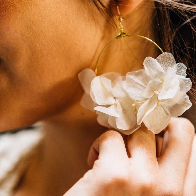 Decorados con delicados pétalos de hortensia estabilizados, los pendientes Maria darán carácter a tu figura.