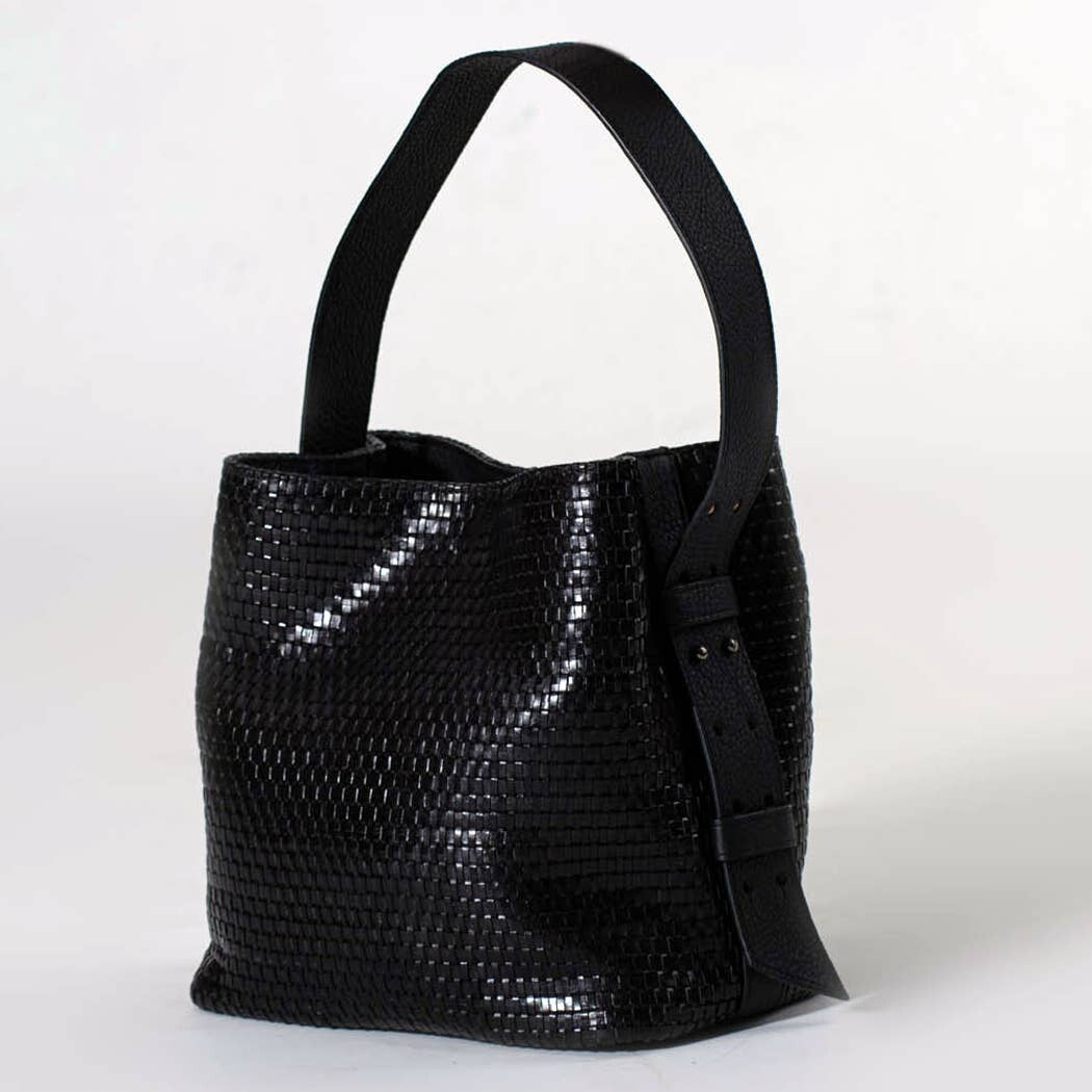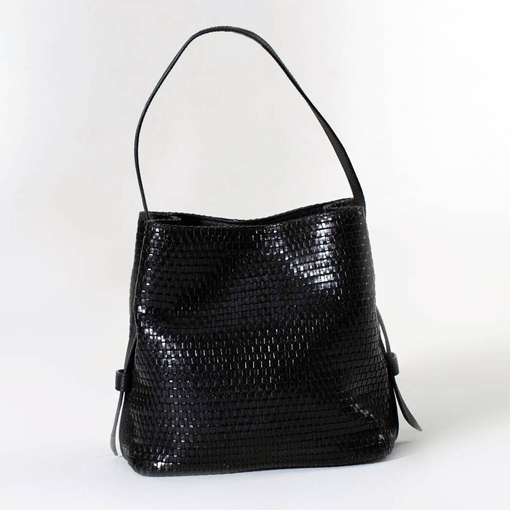 Material cuero negro trenzado.