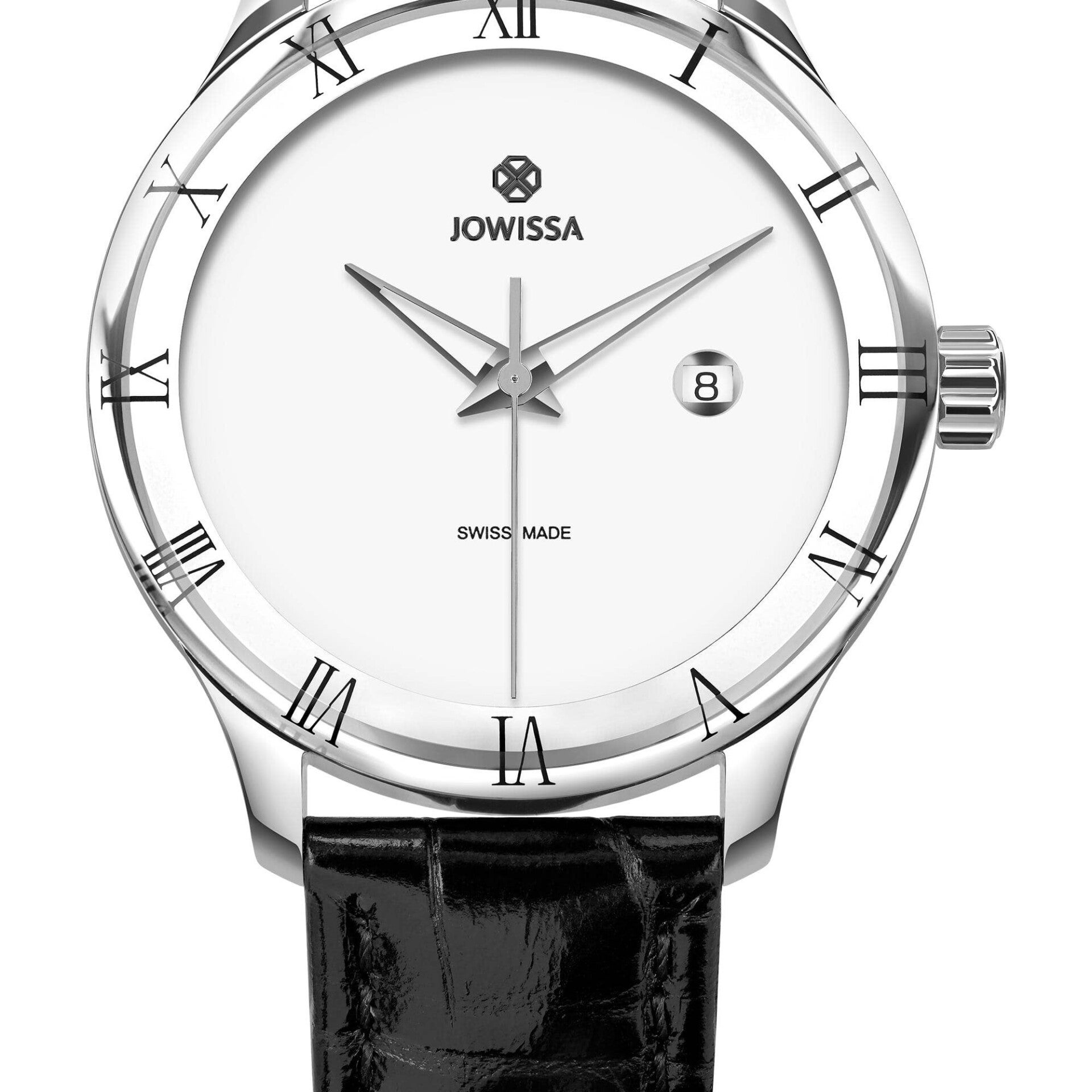 45 mm | Caja de acero inoxidable | Cristal mineral templado | Correa de piel auténtica con tapa de cocodrilo | Movimiento Ronda 515 | Probado en 5 ATM | Calendario