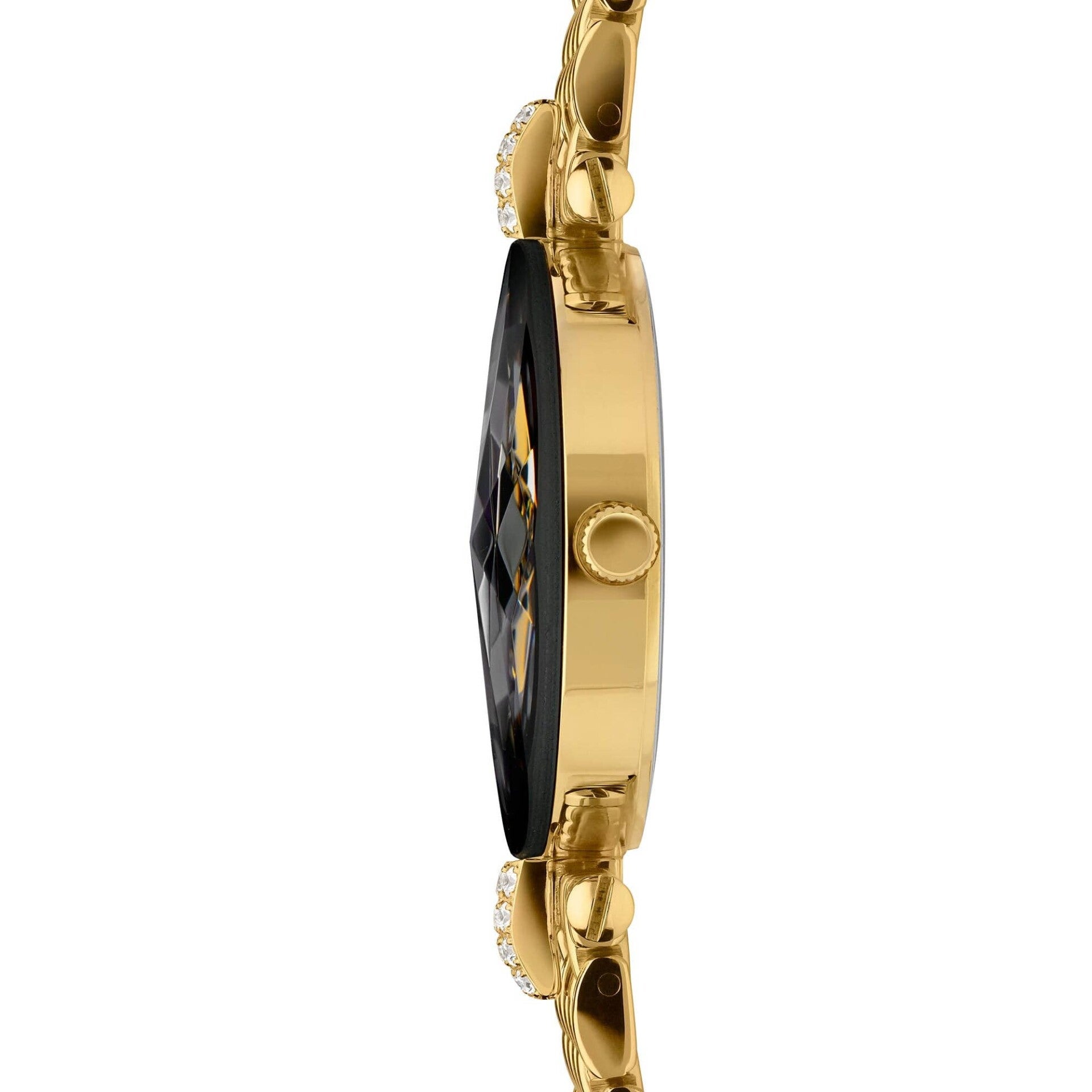 La elegancia moderna define un Strass Facet. Este reloj de mujer fabricado en Suiza con caja de 30 mm complementa tus glamurosos atuendos. Notará un cristal de talla diamante reflectante, brillantes piedras Strass, una esfera negra clásica de rayos de sol y una refinada banda de malla dorada. El diseño elegante y de alta calidad lo convierte en un reloj para atesorar