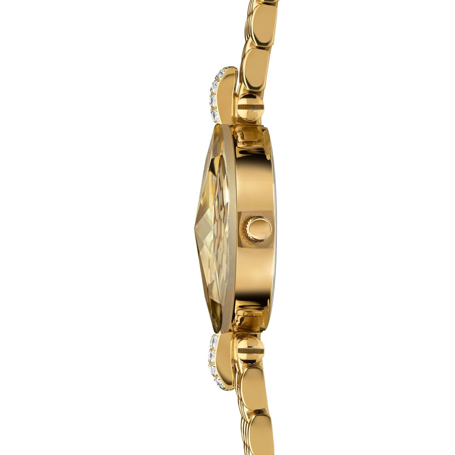 Icono de elegancia y estilo eterno, el Facet Strass es un reloj de joyería para mujer de aspecto único fabricado en Suiza. Complementa su personalidad brillante con su brillante cristal de talla diamante y su reluciente esfera dorada con efecto de rayos de sol en una refinada caja de 25 mm. Las brillantes piedras Strass y la banda de malla dorada brillante añaden un atractivo de lujo