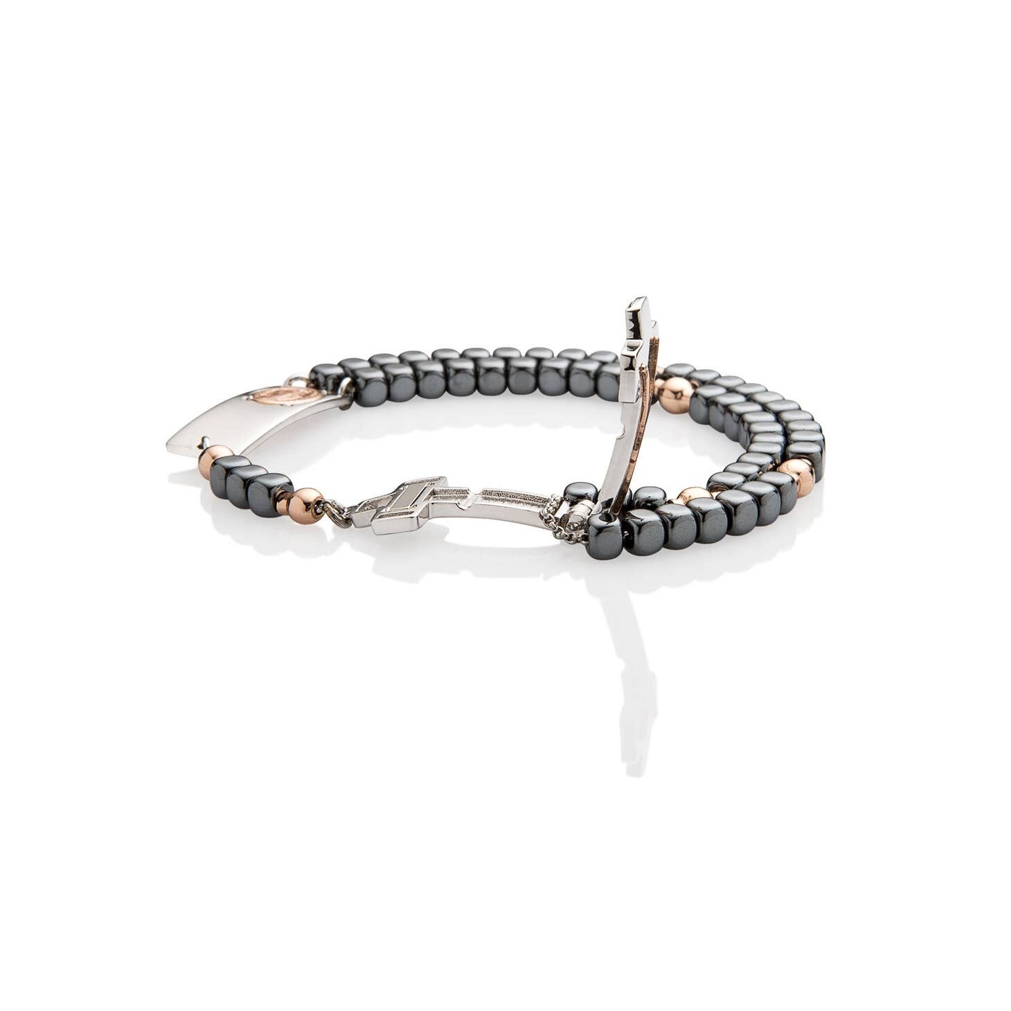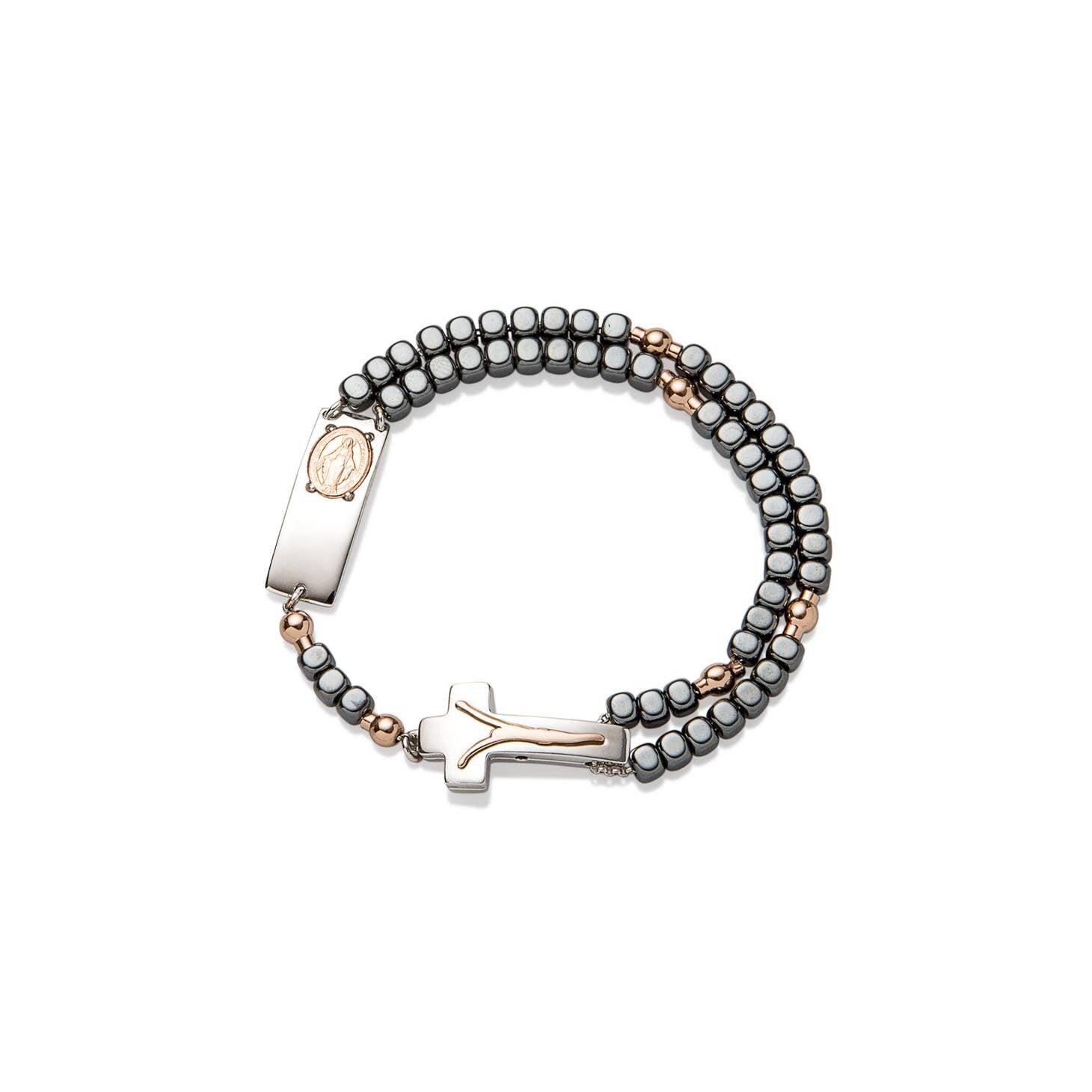 Magnificat Rosalet® - Cuentas cuadradas brillantes de hematita, perlas Pater de oro rosa, modernas