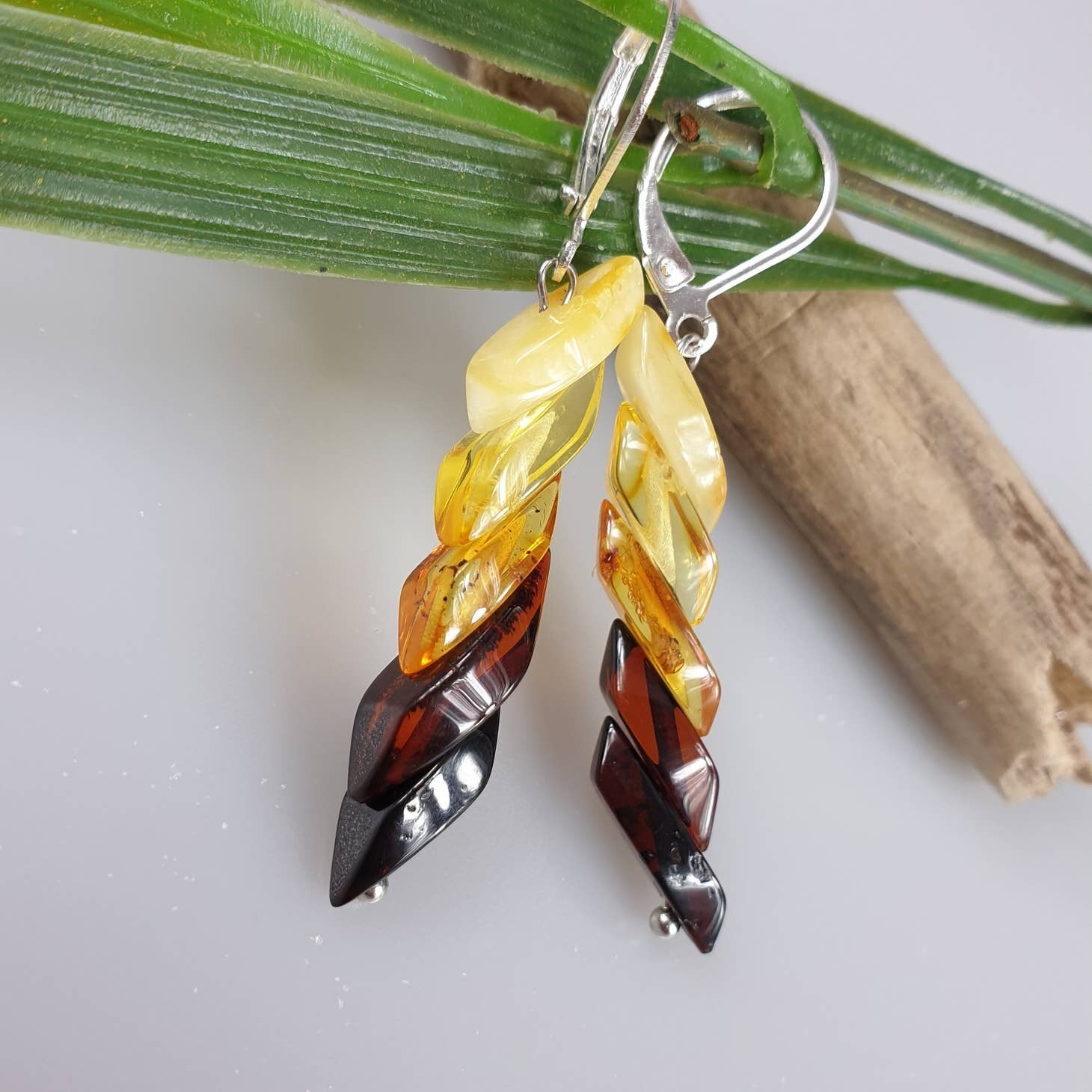 Producto: pendientes de ámbar, pendientes. Pendientes hechos a mano, joyas hechas a mano, regalo para ella. Pendientes colgantes largos de ámbar multicolor.