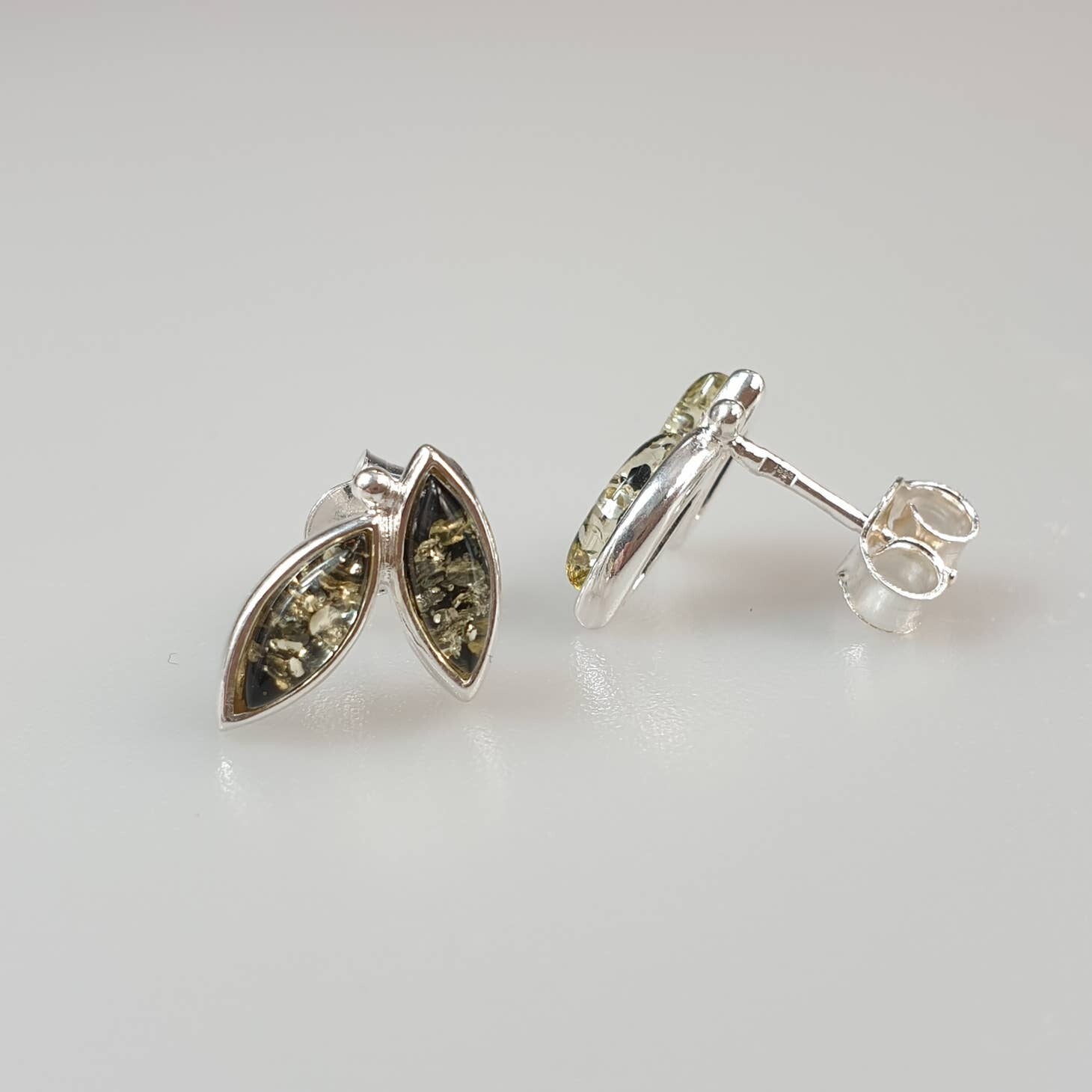 Pendientes de tuerca de ámbar verde. Pendientes con cierre a presión. Plata de ley 925 con sellos.