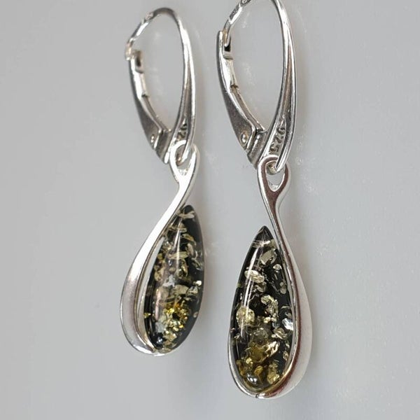 Set de regalo de joyas de plata de ley 925 para sus pendientes de ámbar. Pendientes marrones o verdes al azar. Pequeña y bonita plata de ley 925. Pendientes de uso diario con cierre de palanca.