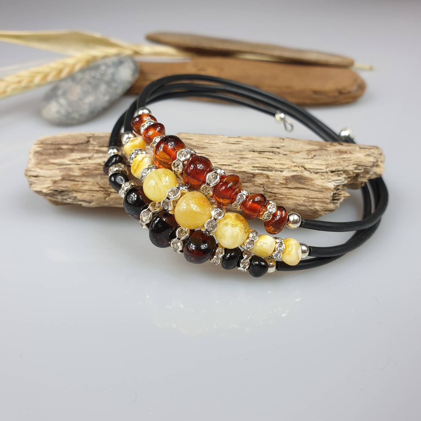 pulsera de ámbar hecha a mano. Triple. Redimensionable. Para adultos. Se adapta a muchas muñecas diferentes.