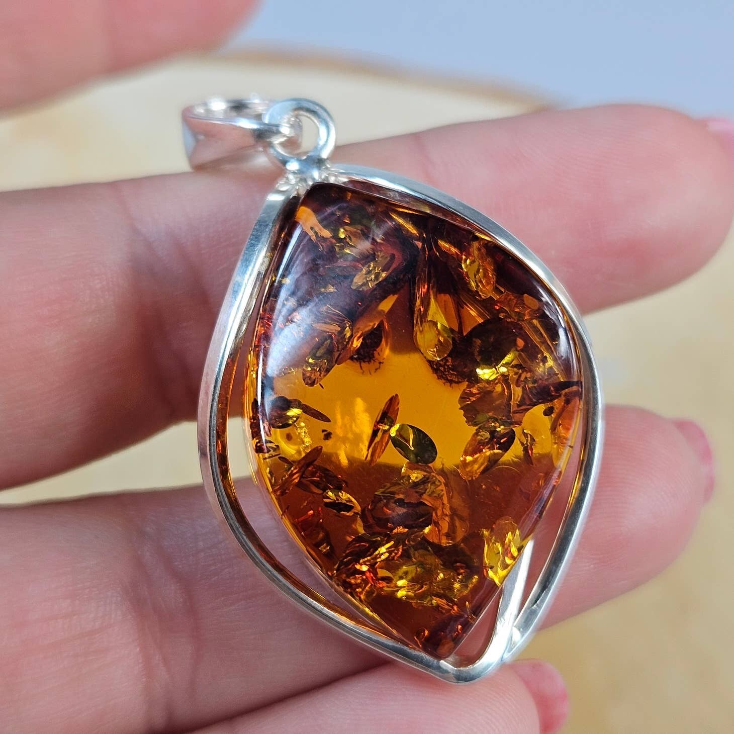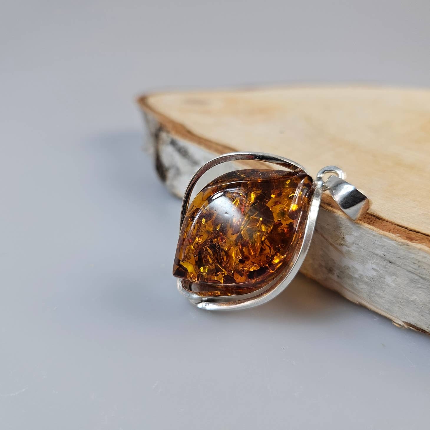 Collar con colgante de plata de ley 925 con gemas de ámbar. Artículo hecho a mano. Cadena incluida como regalo.