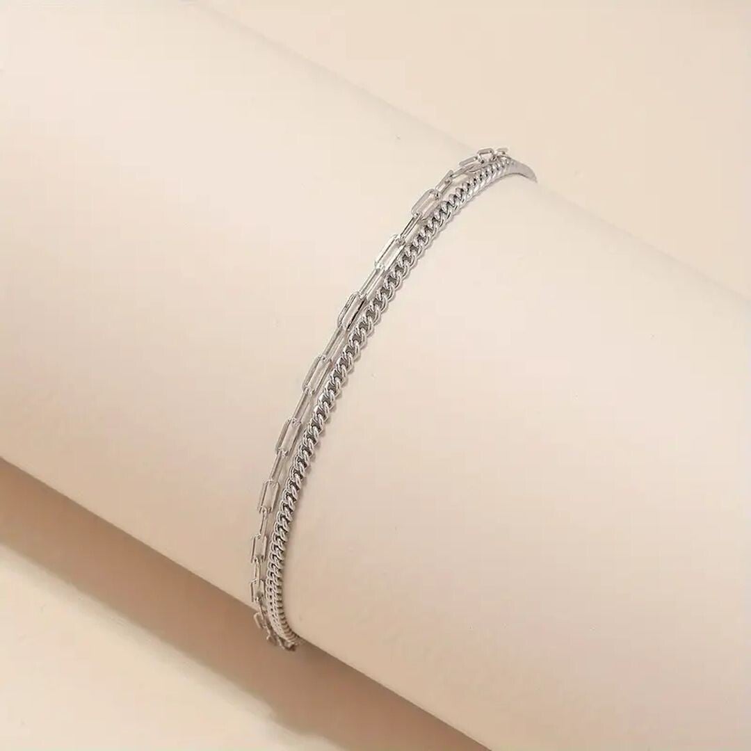 “Destaca con nuestra pulsera de doble capa de cadena doble de plata esterlina 925. Su diseño simple y elegante es perfecto para cualquier ocasión. Añade un toque de sofisticación a tu estilo con esta joya única. ¡Sé tú misma, sé elegante!”