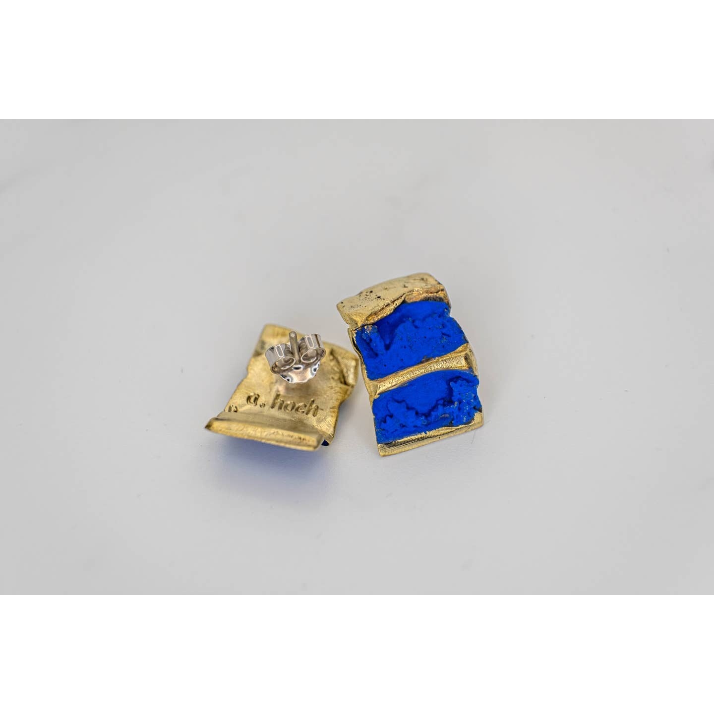 Explore el arte de nuestros aretes irregulares de bronce, disponibles en cautivadores tonos de azul.💙