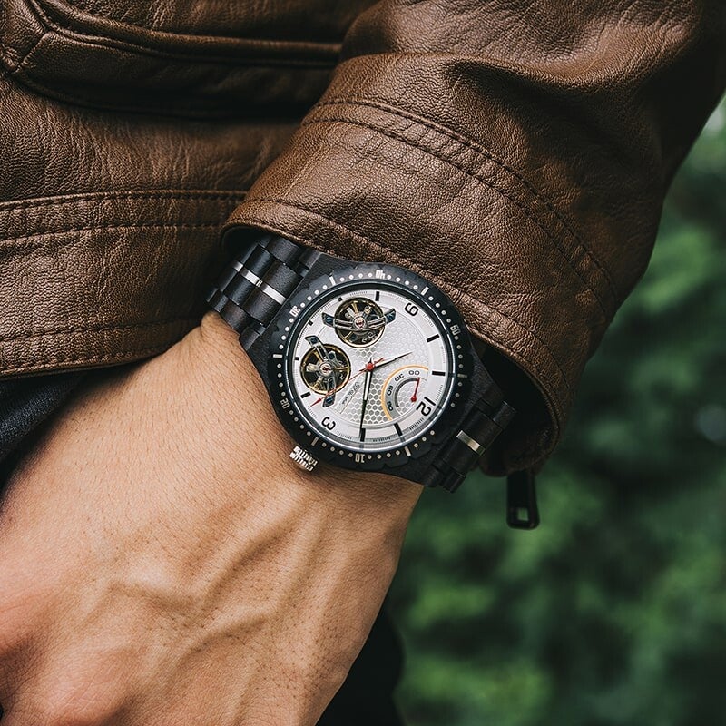 Diámetro del dial: 43 mmComposición de la esfera: madera de ébano y cristal mineral