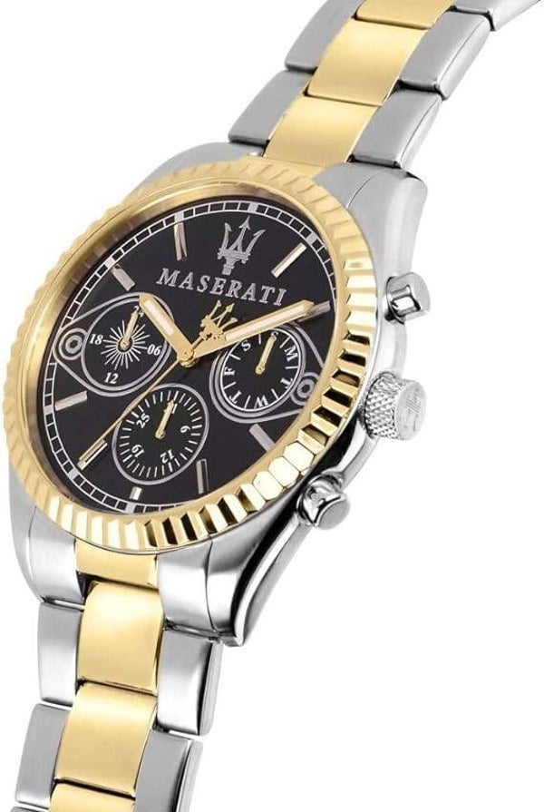Descubre el reloj Maserati de la Colección Competizione con movimiento de cuarzo multifunción en acero y PVD de oro amarillo. Un accesorio sofisticado para el hombre moderno. ¡Ahora con envío gratis a toda Europa! Añádelo a tu colección hoy mismo.