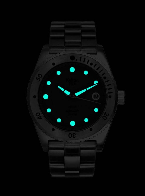 Este reloj está diseñado para resistir la presión hasta 400 metros bajo el agua, permitiéndote explorar la belleza oculta del mundo submarino sin preocupaciones. La zona mesopelágica es un lugar de penumbra, donde más del 99% de los rayos de luz son absorbidos. Pero no te preocupes, nuestro reloj cuenta con Superluminova en los índices y las manecillas, proporcionando una visibilidad excepcional incluso en las condiciones más oscuras.