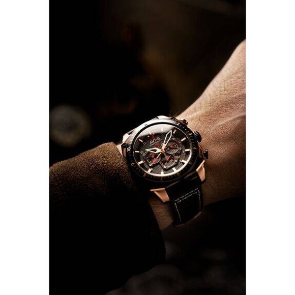 Con su movimiento de cronógrafo de cuarzo con fecha y doble zona horaria, caja de acero inoxidable en tono oro rosa y correa de cuero negro, este reloj combina estilo y funcionalidad. Su resistencia al agua de 5ATM lo hace ideal para cualquier aventura. ¡No te pierdas esta oportunidad única! ¡Hazte con el tuyo hoy mismo!