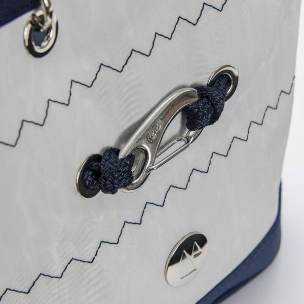 Descubre la esencia del mar con nuestro bolso exclusivo y espacioso. Este bolso, con sus pliegues que cuentan historias de navegación y un mosquetón de acero que evoca recuerdos marinos, es más que un simple accesorio: es un viaje a la mar.