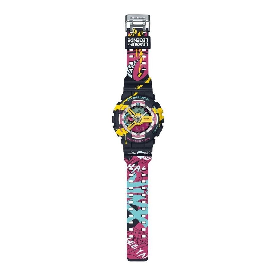 ¡Prepárate para una colaboración épica entre G-SHOCK y League of Legends! Presentamos el Casio GA-110LL-1AER, un reloj que no solo marca el tiempo, sino que también celebra la esencia de Jinx, la campeona más carismática y rebelde de LoL.