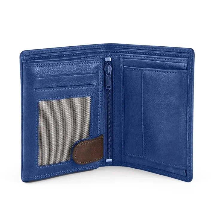 Cartera fabricada en piel. Tiene múltiples ranuras para tarjetas +9, además de un bolsillo con cremallera para monedas. Incluye un compartimento doble para guardar billetes. En el exterior está grabado el logo de la marca. - Colección Manchester.