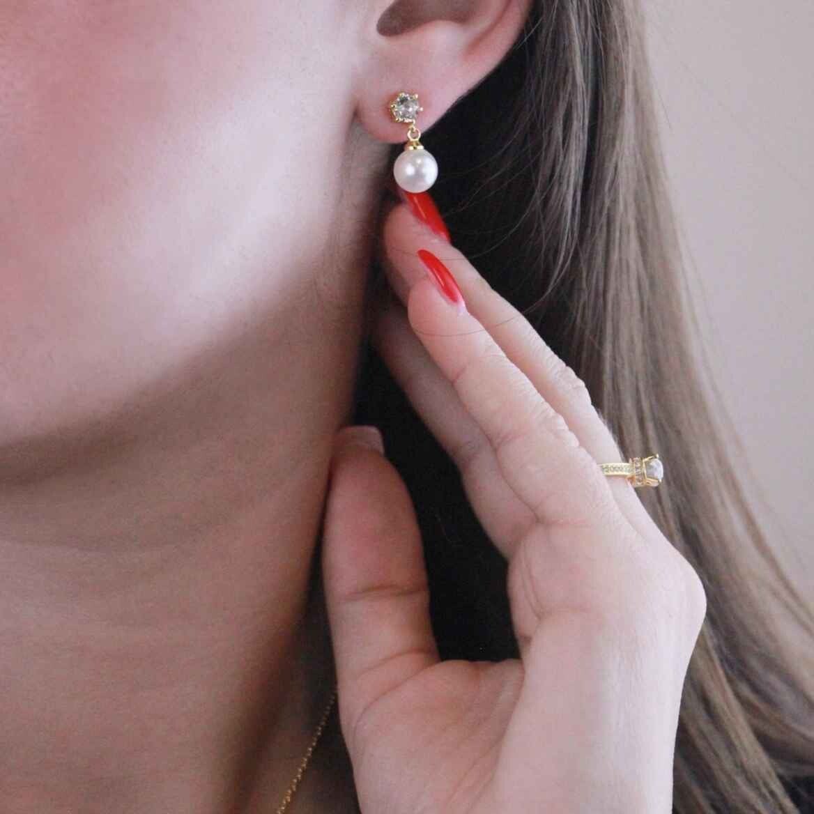 Composición: Latón de alta calidad Acabado: Chapado en oro de 18 quilates Tipo de piedra: Perla austriaca de muy alta calidad y cristal austriaco de muy alta calidad Número de piedras: 3 Color de la piedra: Cristal Longitud de la cadena: 400 + 50 mm Longitud del pendiente: 17 mm