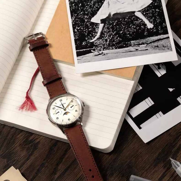Correas intercambiables: El reloj viene con dos correas intercambiables, una malla milanesa y una correa de cuero marrón (Italian Veg Tan). Puedes elegir cualquier combinación de correas.