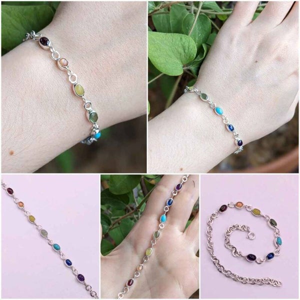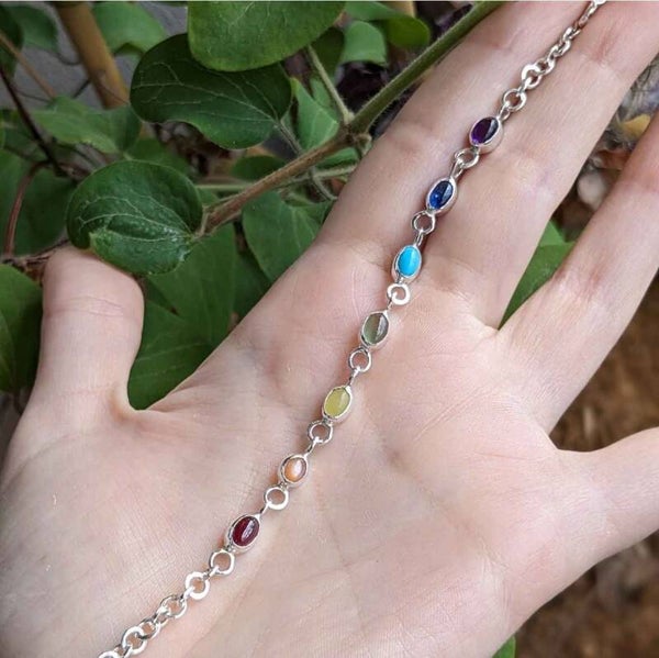 Pulsera ~Arcoíris~ de plata de ley y piedras