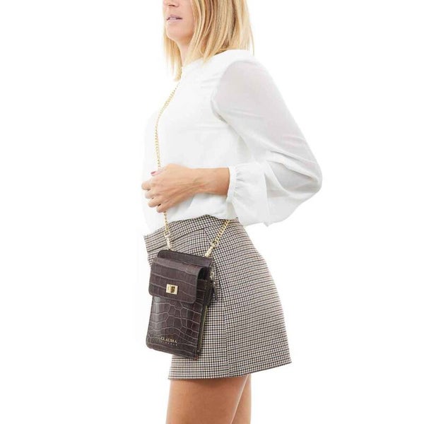 Adorable y práctica, la funda Dorina es el accesorio perfecto para llevar tu teléfono móvil y efectos personales con estilo. Confeccionada en suave piel estampada con efecto cocodrilo, esta funda no solo es hermosa, sino también funcional.
