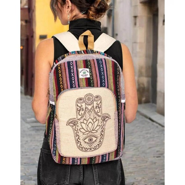 Mochila Unisex de Cáñamo con Hamsa Artesanal