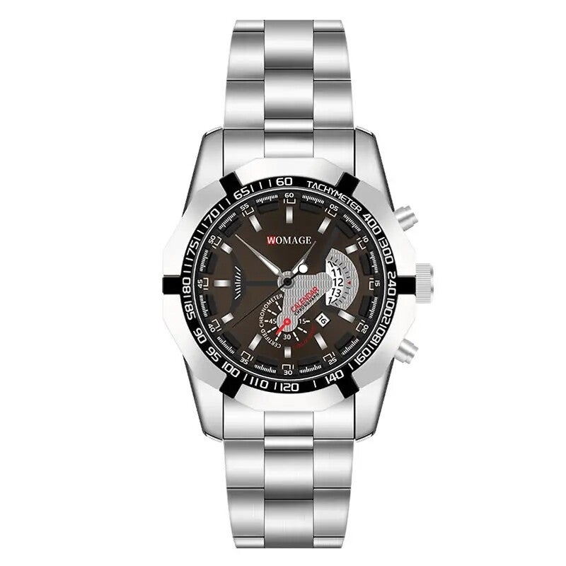 Más que un reloj, un aliado en tu día a día. Con su movimiento de cuarzo, correa de acero y esfera grande, este modelo combina elegancia y rendimiento para el hombre que siempre va un paso adelante.