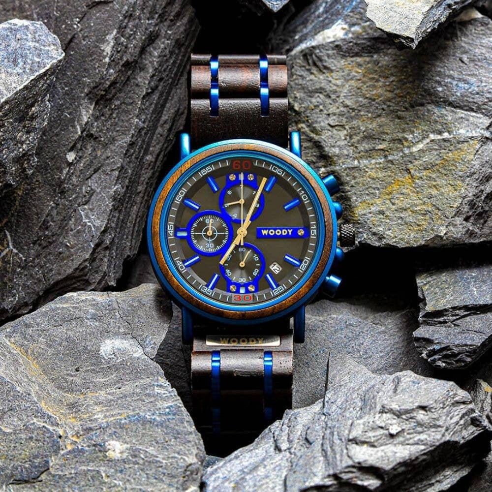 ✅ Caja de madera de ébano oscuro y acero inoxidable azul: Un contraste elegante que resalta su diseño exclusivo. ✅ Cristal de zafiro antirreflejos: Máxima protección contra rayaduras y una visión clara en cualquier entorno. ✅ Movimiento automático japonés: Precisión absoluta sin necesidad de batería, con una reserva de marcha de 42 horas. ✅ Correa de madera ajustable: Ligera, cómoda y adaptable a cualquier muñeca. ✅ Resistencia al agua hasta 50 metros: Perfecto para el día a día, soportando salpicaduras y humedad. ✅ Diseño inspirado en los océanos: Colores naturales que van desde el blanco hasta el marrón rojizo, con un toque azul vibrante. ✅ Fabricado con materiales ecológicos: Una opción sostenible para quienes valoran el lujo responsable.