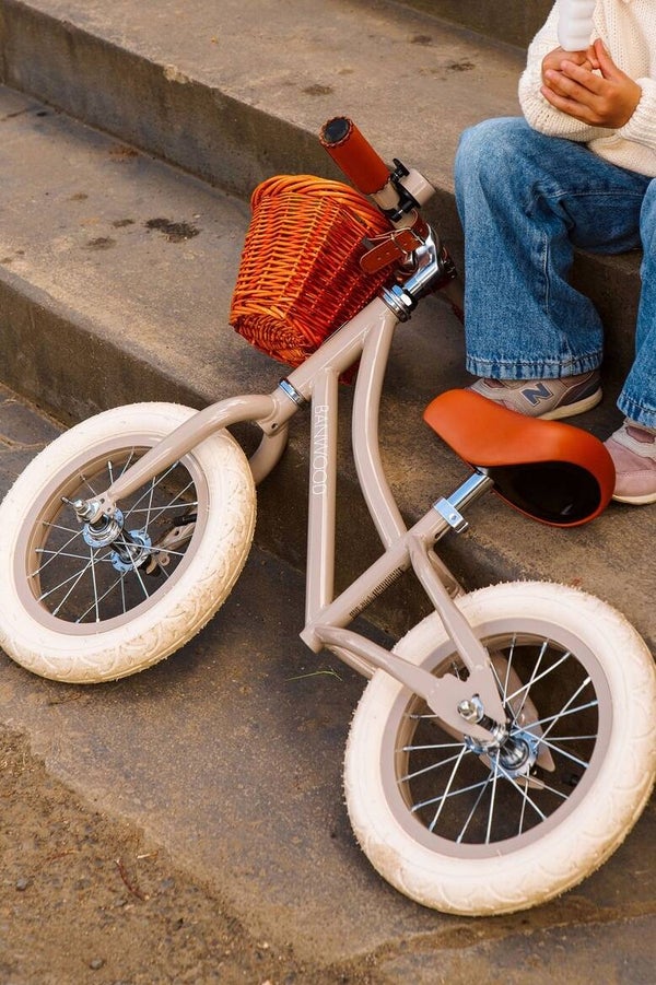 🤍 Equilibrio con elegancia natural La Banwood First Go Vintage – Beige es una bicicleta de equilibrio sin pedales diseñada para niños de 2,5 a 5 años, con estética retro, materiales ecológicos y acabados de calidad boutique. Su tono beige suave y detalles clásicos la convierten en el regalo perfecto para familias que valoran diseño, seguridad y durabilidad.