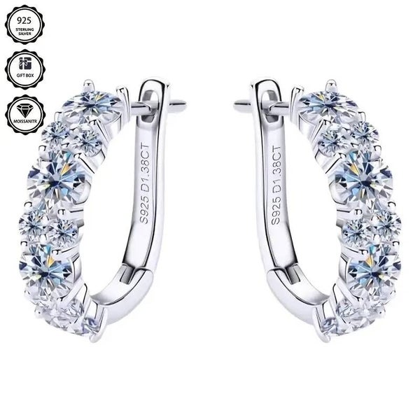Celebra tu brillo único con un regalo inolvidable Sorpréndela en este aniversario o Navidad con unos pendientes de aro de Plata 925, delicadamente incrustados con moissanitas de 0.3Ct y 0.2Ct que reflejan la luz con un destello comparable al diamante.