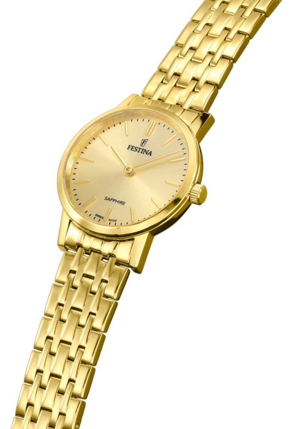 Festina Swiss Made Gold es más que un reloj: es una declaración de estilo y prestigio.