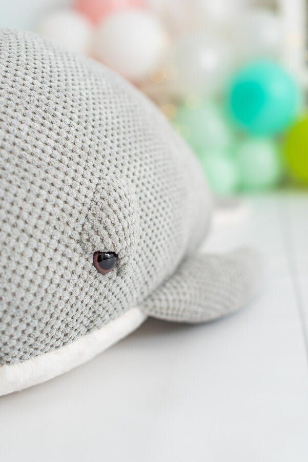 Peluche Ballena Gris 100% Algodón – Bordado a Mano, Fabricado en España