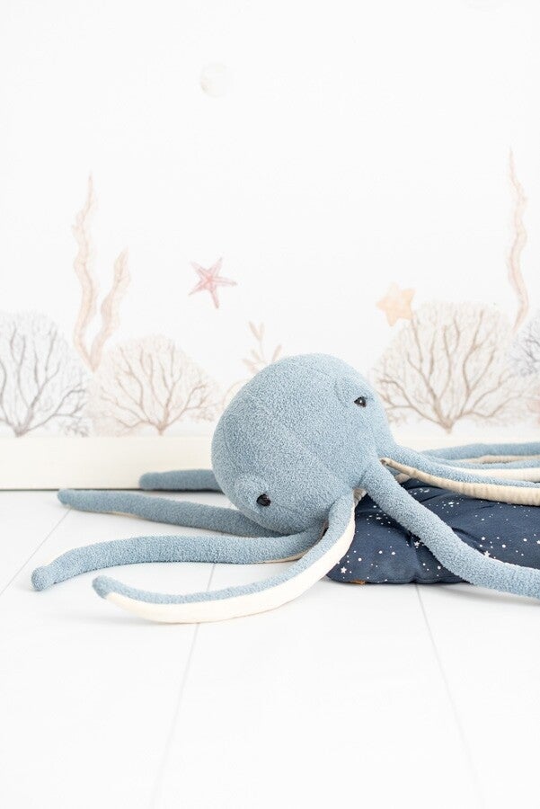 El Pulpo Maxi Azul es mucho más que un peluche: es una pieza de diseño artesanal confeccionada en algodón 100% natural, hipoalergénico y suave al tacto. Su tamaño generoso y su acabado en tonos azules lo convierten en un compañero ideal para los niños y en un elemento decorativo único para habitaciones infantiles, zonas de juego o espacios creativos.