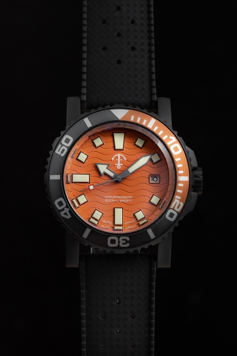 Presenta el KOMPRESSOR Wkr03001 Limited, una pieza de ingeniería finlandesa creada para quienes exigen precisión, resistencia y carácter. Un reloj de buceo moderno con alma vintage, diseñado para rendir en condiciones extremas sin renunciar a una estética sólida y atemporal.