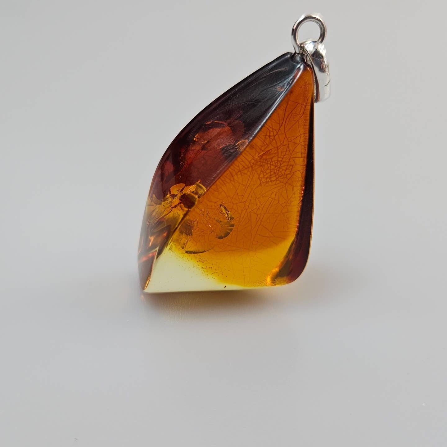 Colgante de Ámbar Báltico – Cabujón de Lágrima Amarillo, Coñac y Rojo