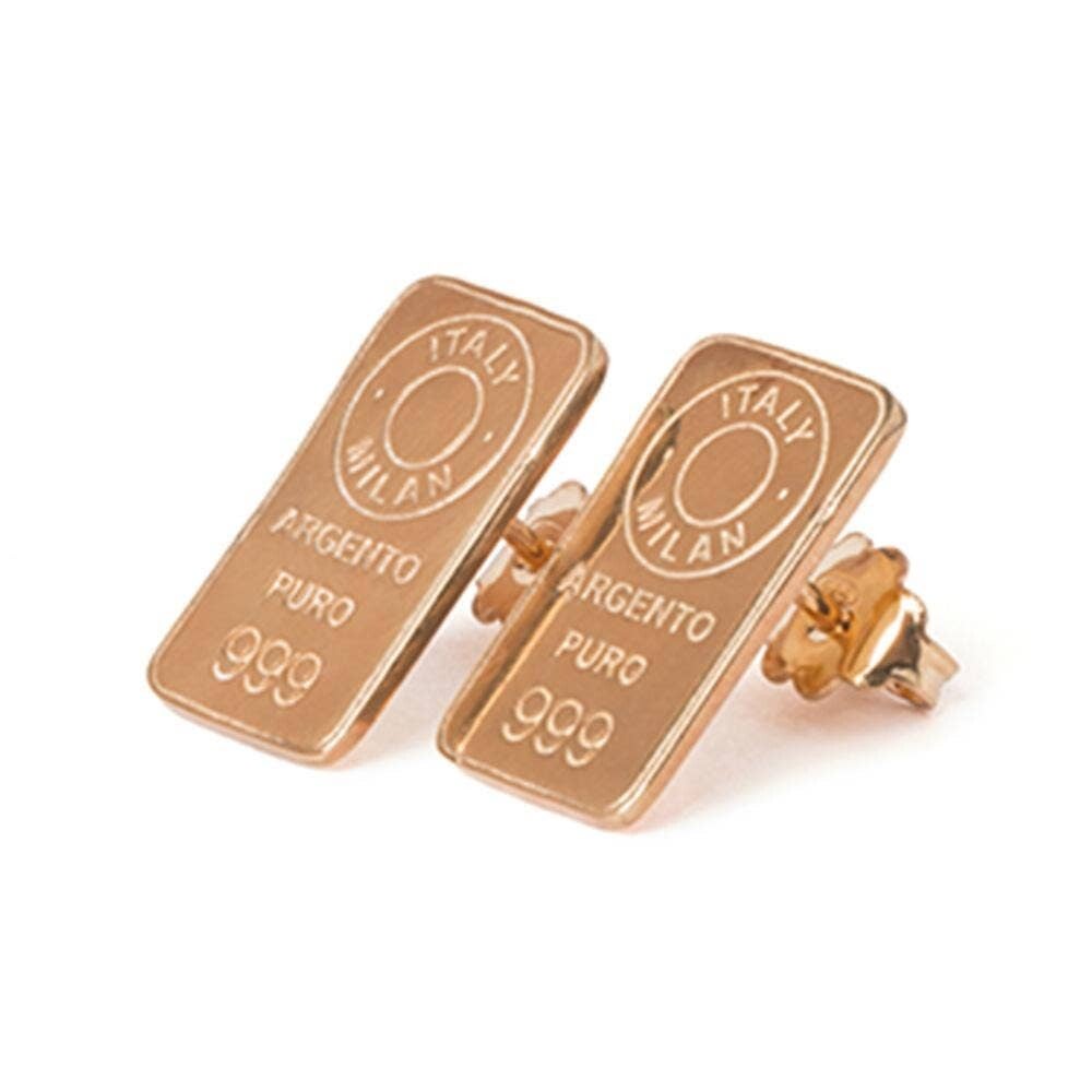 Pendientes de lóbulo de oreja con lingote de plata pura 999 y componentes de plata de ley 925.