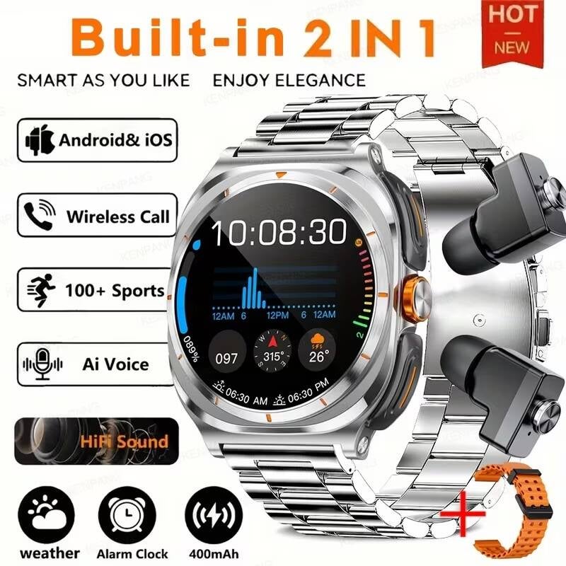 GUHUAVMI 2025 Nuevo Smartwatch con Auriculares Incorporados, Efecto de Sonido Hifi, Pantalla de Alta Definición de 1.53 Pulgadas, Llamada Inalámbrica, Control NFC, Reproducción de Música, Capacidad de 400 Mah, Más de 100 Modos.